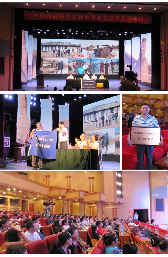 会议由吉林省文联民协和摄影家协会联合举办,黑龙江文联民协、摄协;辽宁省文联民协、摄协的领导和专家及吉林省文联民协、摄协、民间文艺家、摄影家、省建筑大学、吉林大学、吉林师范大学、吉林艺术学院、长春工业大学等各大专院校科研单位师生200多人参加了会议。会议由民间文艺家协会副主席、吉林省民协主席曹保明主持,详细介绍了此次工作的精神和意义,传达了民协罗杨书记、摄协王瑶书记和民协主席冯骥才的讲话精神;省摄影家协会负责人荆宏宣读了文联民协、摄协关于开展传统村落立档调查的通知;村落文化专家吉林建筑学院王一教育做了题为《我们的责任与使命》的发言;吉林省蛟河县苏尔哈村书记廖昌武做了《全村人都盼你们来》的发言;村落文化志愿者吉林建筑学院城乡规划学研究生李冬洋代表吉林省全体村落文化志愿者作了《志愿者的心声和希望》的发言;省文联党组成员副主席孙凤平向东三省参会代表发放了传统村落立档调查手册,立档调查工作组的队旗,并为新组建的“传统村落立档调查工作吉林省办公室”揭牌,组建了专家组、工作组,会议决定将“传统村落立档调查东三省办公室”设在长春。