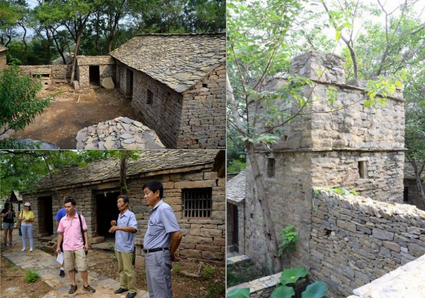 兴隆庄村石板房院落(左上)工作组调查场景(左下)兴隆庄村炮台(右)
