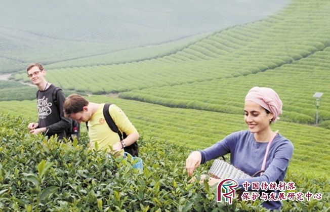 海外学子们体验手工采茶。
