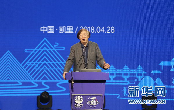 4月28日,冯骥才在传统村落黔东南研讨会上发言。新华网 卢志佳 摄