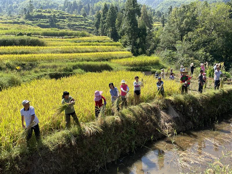 农民丰收节刚刚过去,青田县方山乡龙现村里依然一片繁忙的丰收景象。层层叠叠的梯田在阳光照射下泛着金色的光芒,沉甸甸的稻穗压弯了腰,肥硕的田鱼在稻田里欢快嬉戏。村里的男女老少忙着割谷收鱼,迎接“新米饭撞鼻头,红田鱼满盘头”的丰收喜悦。