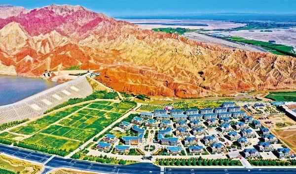 ▲中国要美,农村必须美。近年来,甘肃省张掖市临泽县把全域无垃圾治理和建设美丽乡村、推进乡村振兴结合起来,全民参与着力改善农村环境面貌,提升了群众幸福指数。图为2021年8月24日,丹霞山下的张掖市临泽县倪家营镇梨园新村。人民图片 王将/摄