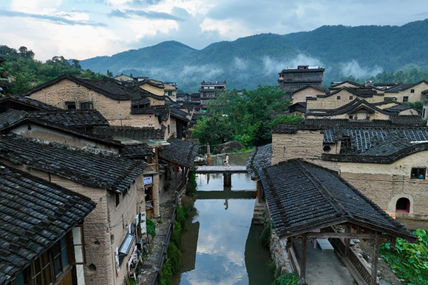 这是8月29日拍摄的龙潭村小溪两岸的古民居群(无人机照片)。